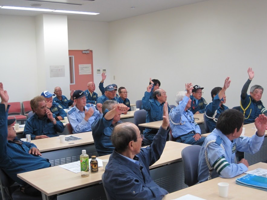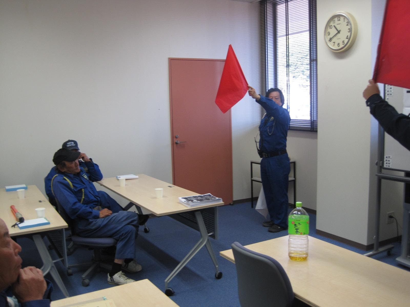 私たち警備員の優劣どこで決まるのかと言うと「潜在的危険がどこに潜んでいるか、を予測しそれに対する防止行動を取る能力」によって決まると言っても過言ではありません。交通誘導のプロ集団としての弊社では、個々の社員が持つ経験と遭遇した様々なケースについて分析・検討し、その1つ1つについての最善な方法、撤低したK/Y(危険予知)教育を行い、お客様の多種多様な現場においても「危険のポイント」を瞬時に判断し危険を未然に防ぐ行動を個々の社員が取る事ができ、この事によりお客様が「ヒヤリ」「ハッ」とする場面をなくし、安心して作業を進めていただける為の教育です。